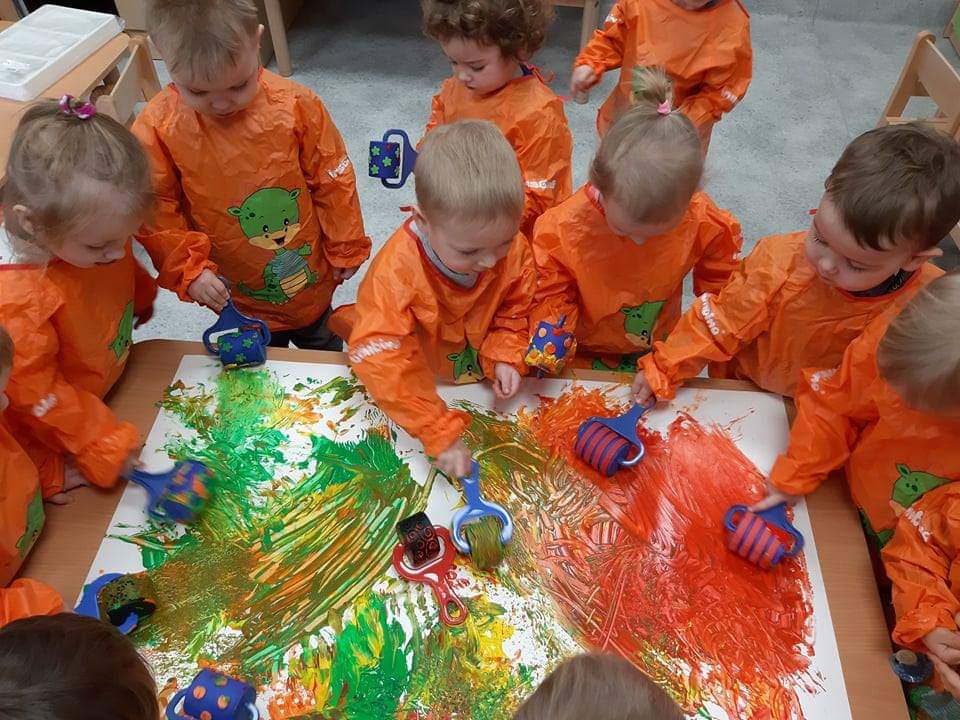 Żyrafki malują wałkami